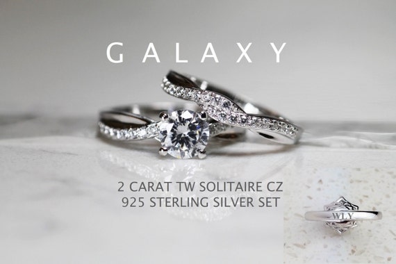 Star Trek Galaxy Class Tungsten And 925 Sterling Silver 2 Carat Cz Wedding Ring Set 8mm Star Fleet Insignia Custom Engraved
