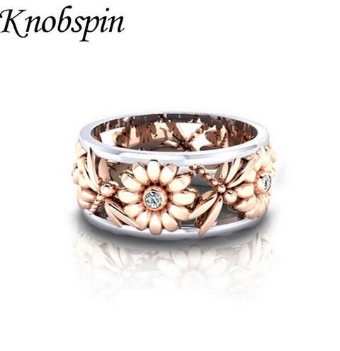 Rose Gold Color Dragonfly Sunflower Female Ring Romantic Engagement Wedding Ring For Women Fashion Party Jewelry Size 6 10 Anel 2 Carat Diamond Ring