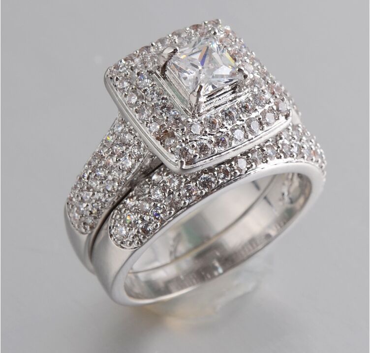 2019 High Quality Double Fair Engagement Wedding Rings Cubic Zirconia Silver Plated Cz Stone Ring Jewelry Gift For Women Anel Wholesale From