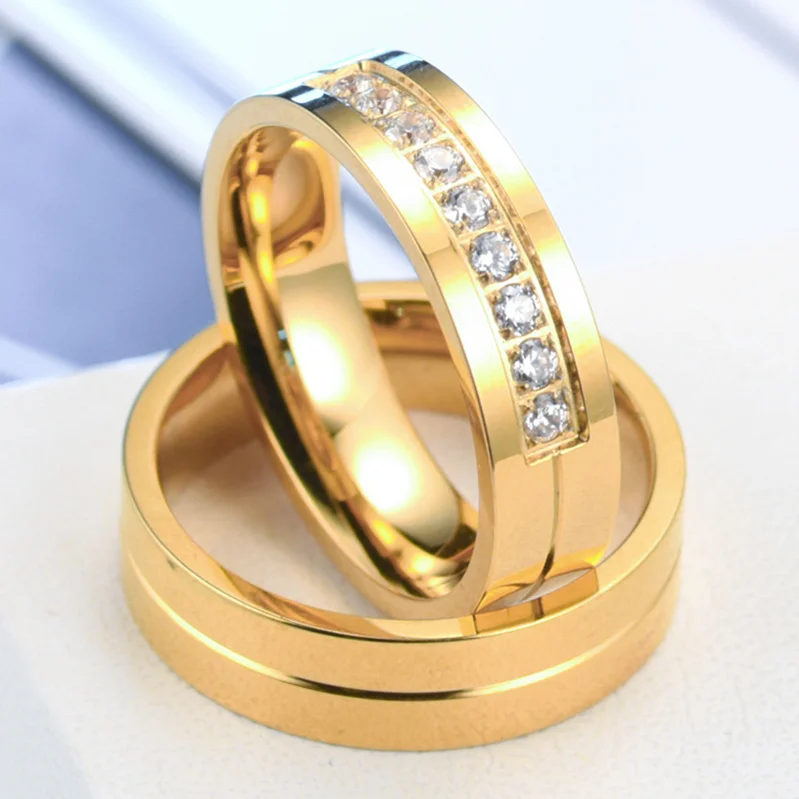 Us 0 99 50 Off 6mm Titanium Steel Simple Couple Ring Trendy Wedding Bands Rings For Love 14kgp Cz Zirconia Stainless Steel Ring In Engagement Rings