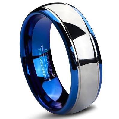 Queenwish 8mm Two Tone Tungsten Carbide Wedding Bands Blue Silver Dome Gunmetal Engagement Promise Rings For Couples Jewelry