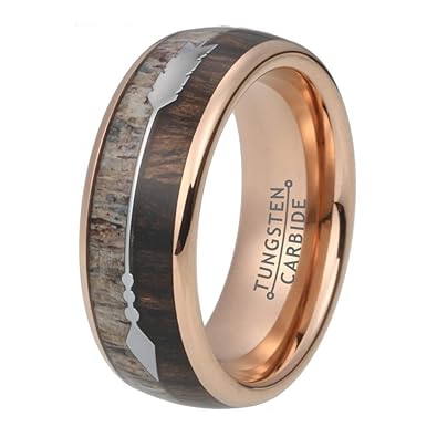 Wow Jewelers 8mm Deer Antler Rose Gold Wedding Band Tungsten Carbide Rings For Men Women Koa Wood Arrow Inlay Comfort Fit