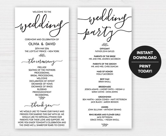 Wedding Program Template Printable Wedding Program Wedding Program Printable Ceremony Printable Template Pdf Instant Download Editable