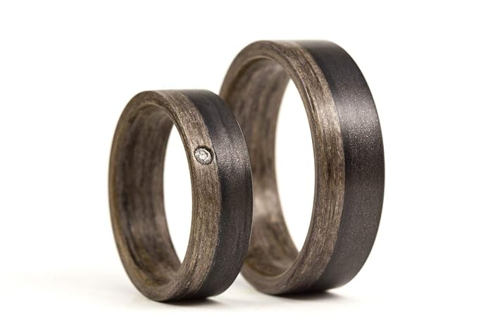 Amazon Com Set Of Two Graphite And Bentwood Wedding Bands