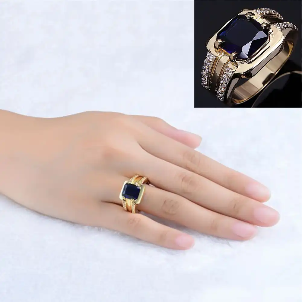 Fashion Man Women Blue Yellow Gold Filled Wedding Ring Size 7 8 9 10 11