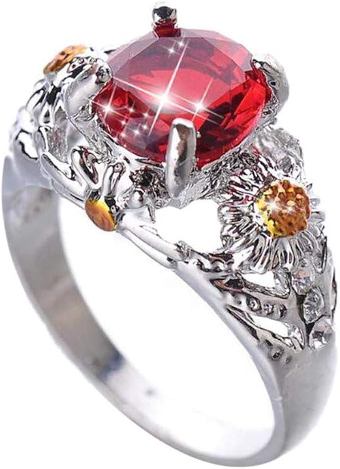 Details About Size 7 Black Wedding Engagement Ring Red Crystal Cluster Cocktail Party Jewelry